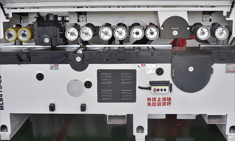 10、送料輪送料比履帶送料更經(jīng)濟,更易于控制和維護。 壓料采用氣壓式,即使木材厚度變化較大,壓料壓力也是固定的,壓料厚度較寬,可達35mm。